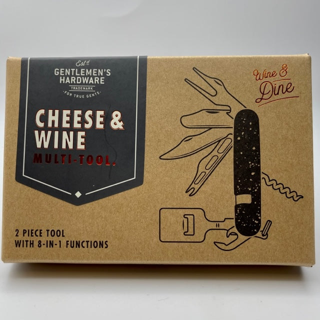 The ultimate multi-tool for Cheese and Wine lovers. This tool splits inbto 2 parts and includes 4 blades for cheese, a can opener, fork, corkscrew and bottle opener.