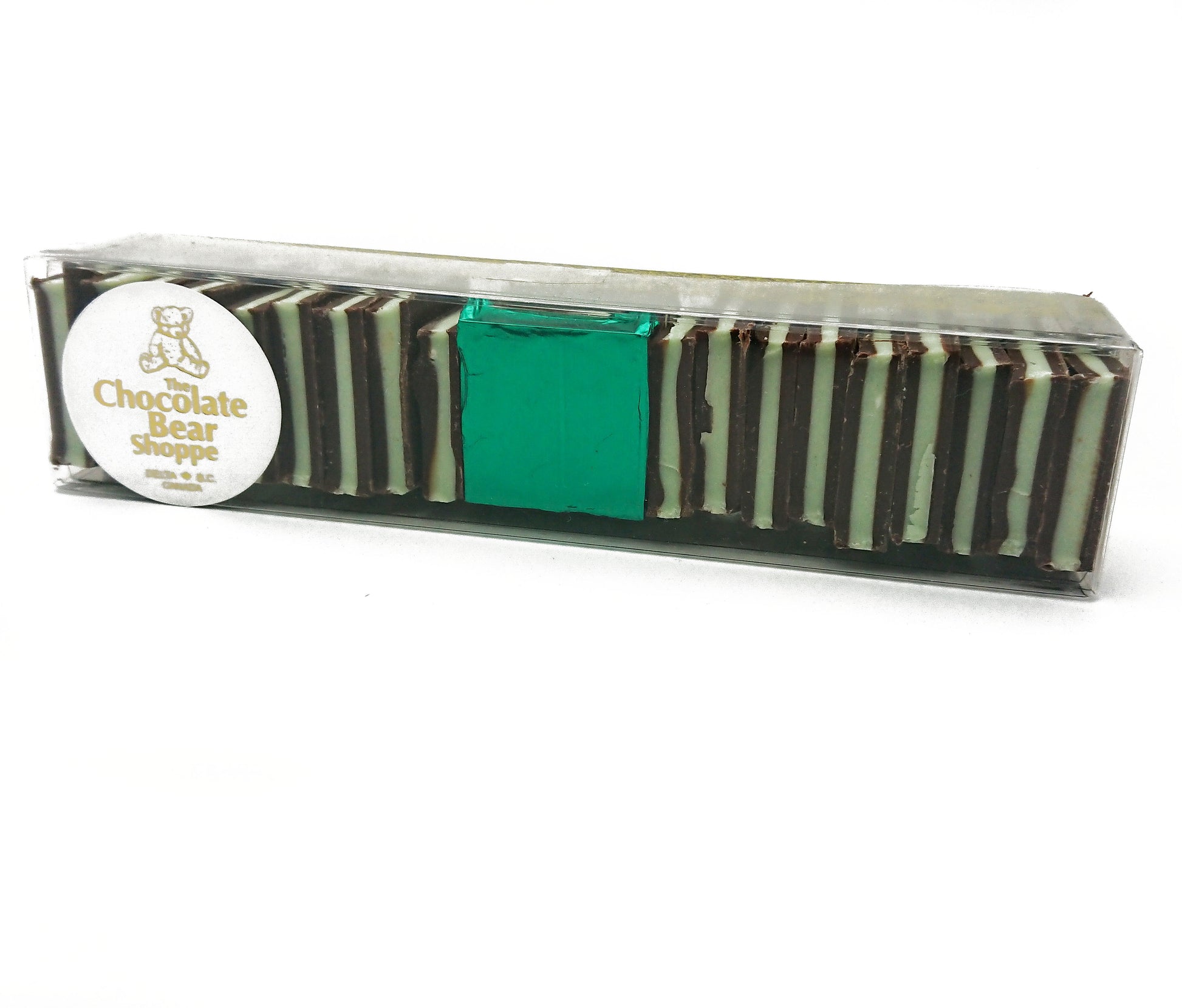Dark chocolate with a white chocolate mint flavoured centre. 165g.